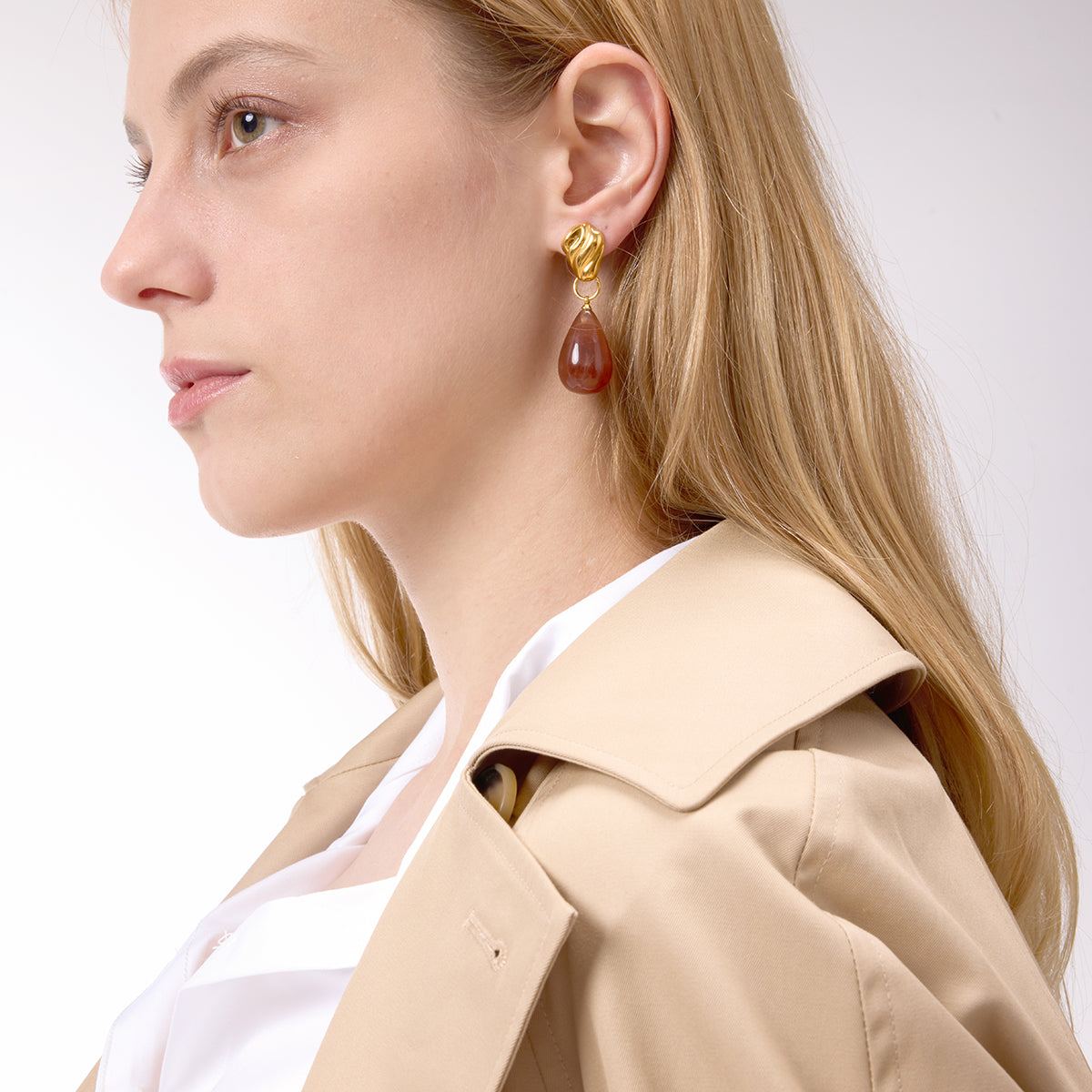 Ambrelle by Saga & Segust captures the quiet glow of amber light in motion. Crafted from premium stainless steel with a luxurious 18K PVD gold finish, these teardrop earrings feature a smooth translucent resin that shifts from golden honey to deep brown — a perfect gradient of warmth and sophistication. Lightweight, waterproof, and hypoallergenic, Ambrelle embodies effortless elegance — refined, modern, and timeless.