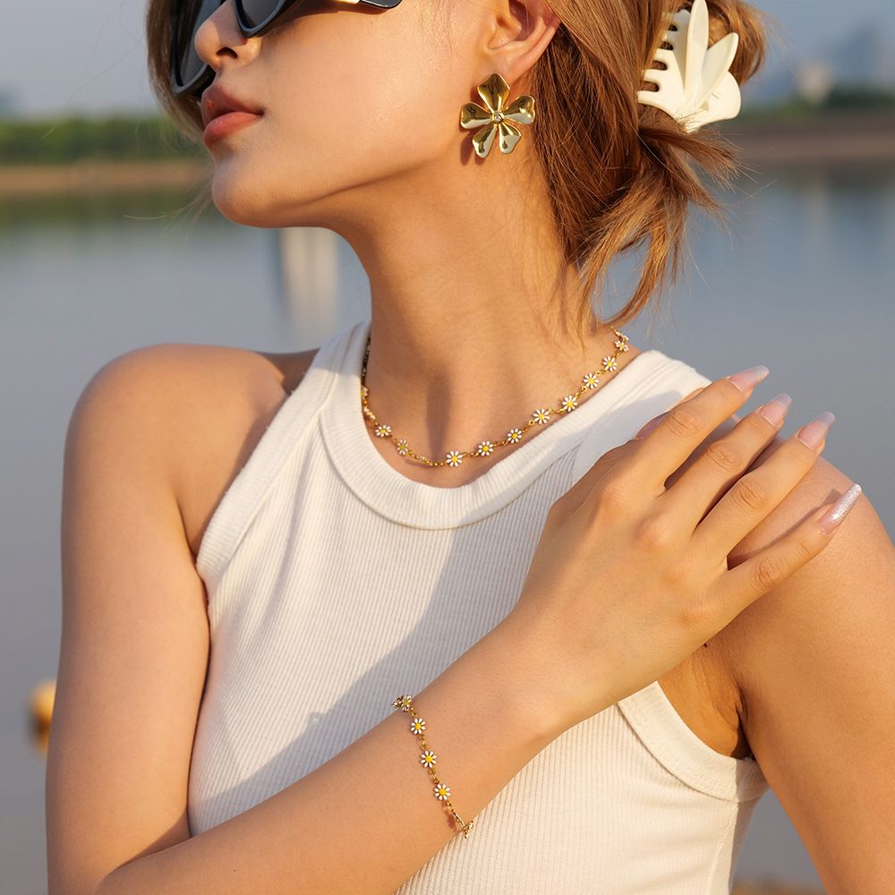 Florelle by Saga & Segust captures the brilliance of a golden bloom. Crafted from premium stainless steel and plated with rich 18K gold, these large floral earrings feature radiant zircon stones at their heart — symbolizing the beauty of light within nature. Bold yet refined, Florelle is designed to command attention while remaining effortlessly feminine. Waterproof, hypoallergenic, and tarnish-resistant, it’s a timeless expression of elegance that never fades.
