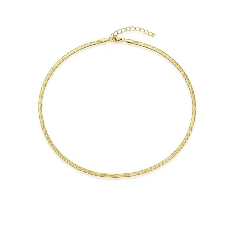 Helia by Saga & Segust captures timeless sophistication with a modern edge. Crafted from premium stainless steel and finished with a radiant 18K gold plating, this herringbone snake chain choker drapes beautifully along the neckline for a sleek, fluid silhouette. The smooth, mirror-like surface reflects light with every movement, embodying effortless elegance. Hypoallergenic, waterproof, and resistant to tarnish, Helia is designed for everyday luxury a versatile essential that elevates any look from day to night.