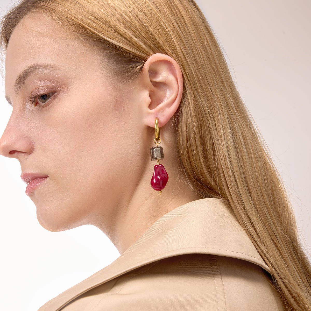 Luméa by Saga & Segust captures the poetry of light and form. These modern drop earrings feature semi-transparent gradient resin squares framed in fine stainless steel with a rich 18K PVD gold finish. The gentle fade of color evokes sunset reflections, while the clean geometric silhouette adds a touch of architectural chic. Lightweight, waterproof, and hypoallergenic, Luméa brings refined modernity to every moment — luminous, balanced, and beautifully bold.