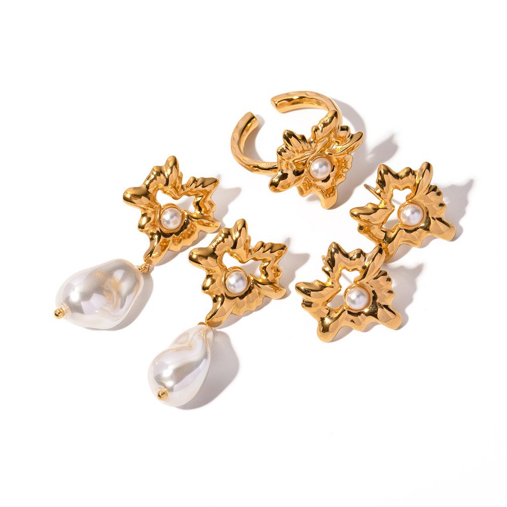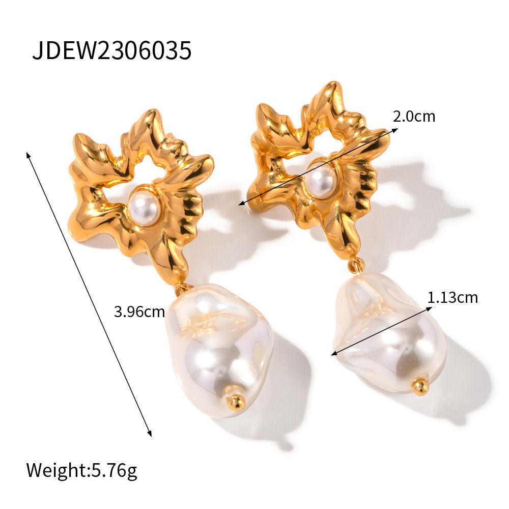 Floral Pearl Pendant Earrings – 18K Gold-Plated Stainless Steel