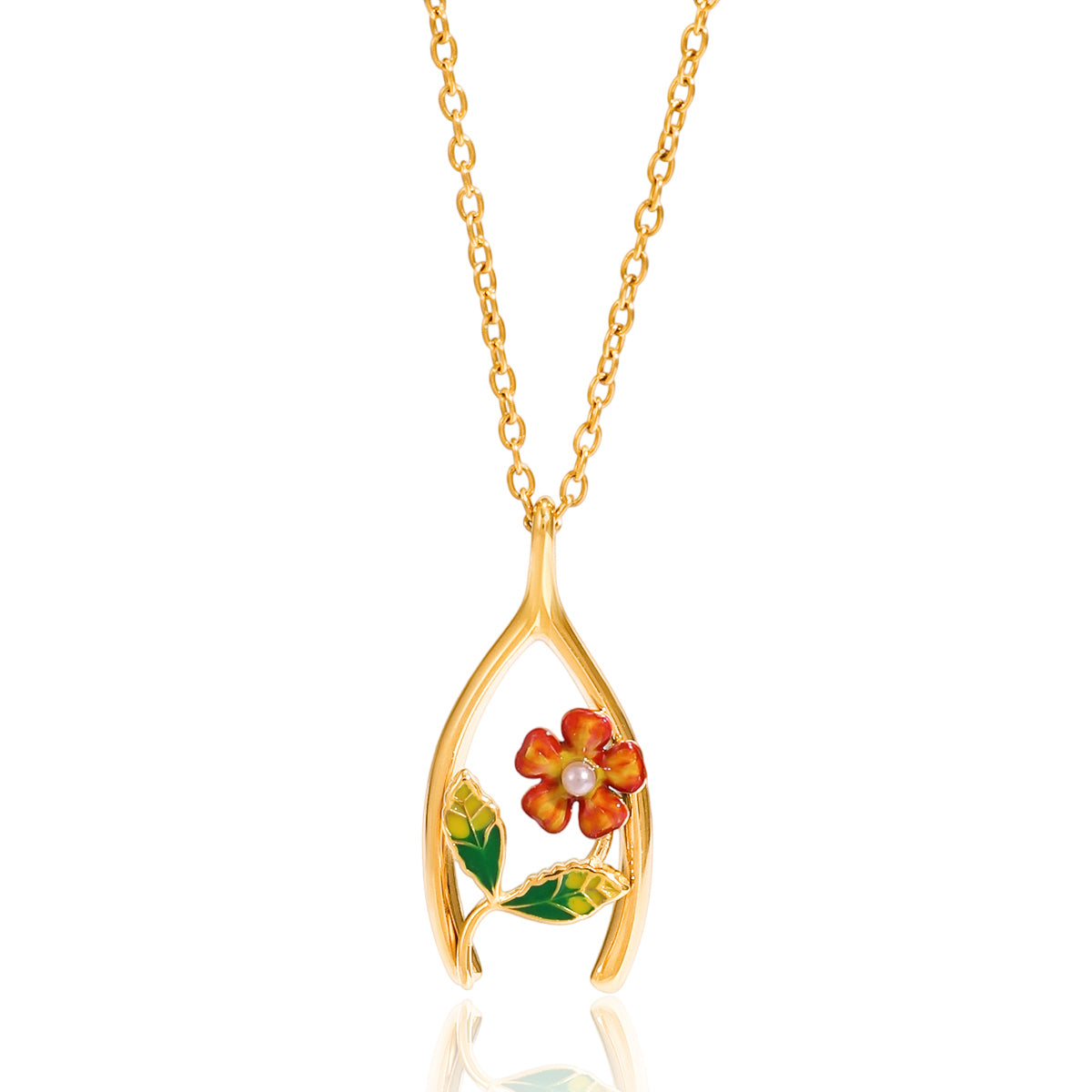 Crafted from high-quality stainless steel, this piece features a delicate wishbone pendant shaped like a blooming flower, symbolizing luck, hope, and new beginnings.